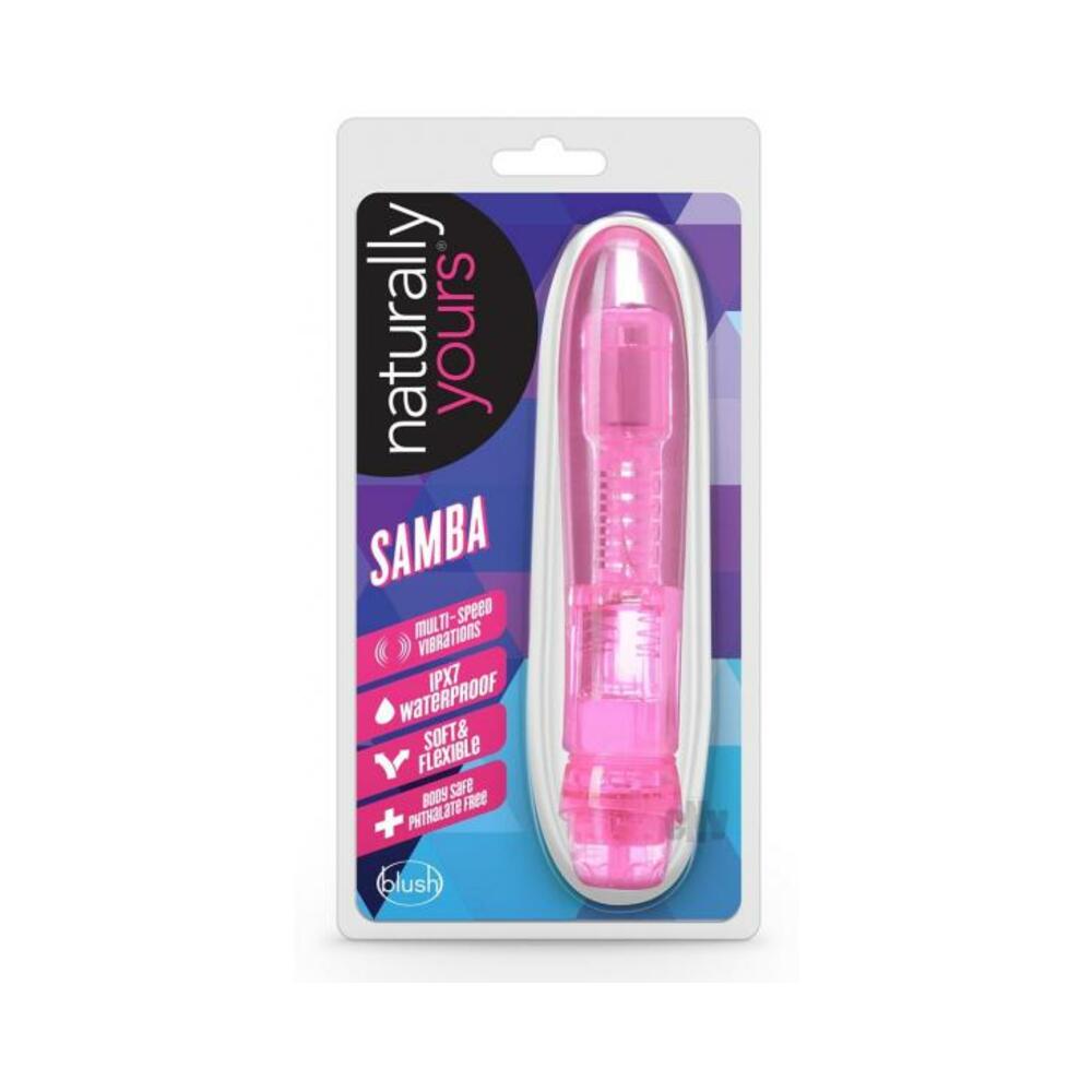 This stylish and sexy Samba vibe is ready to dance! Enjoy adjustable multi-speed vibrations with this soft vibrating dildo that has a bulbous end for maximum stimulation, yet soft and flexible to hit ALL of your sweet spots! The Samba Vibe is a hand-crafted soft vibrator, made of pure body-safe TPE. AND it’s waterproof, so you can take it into the shower, bath, or hot tub! So, get ready for a wild ride because this will rev up all your naughty horizontal dancing sensations! Requires 2 AAA Batteries sold separately. 6.25 Inch Length (5.5 Inch Insertable) x 1.25 Inch Width Adjustable Multi-Speed Vibrations Waterproof Requires 2 AAA Batteries (Not Included) Made from TPE. Contains no Fragrances, Phthalates, Paraffins or Latex Warranty: 90 Days