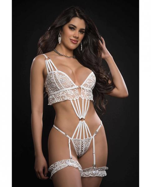 O’ring Caged Garter Teddy W/lace Garters Lavish White O/s