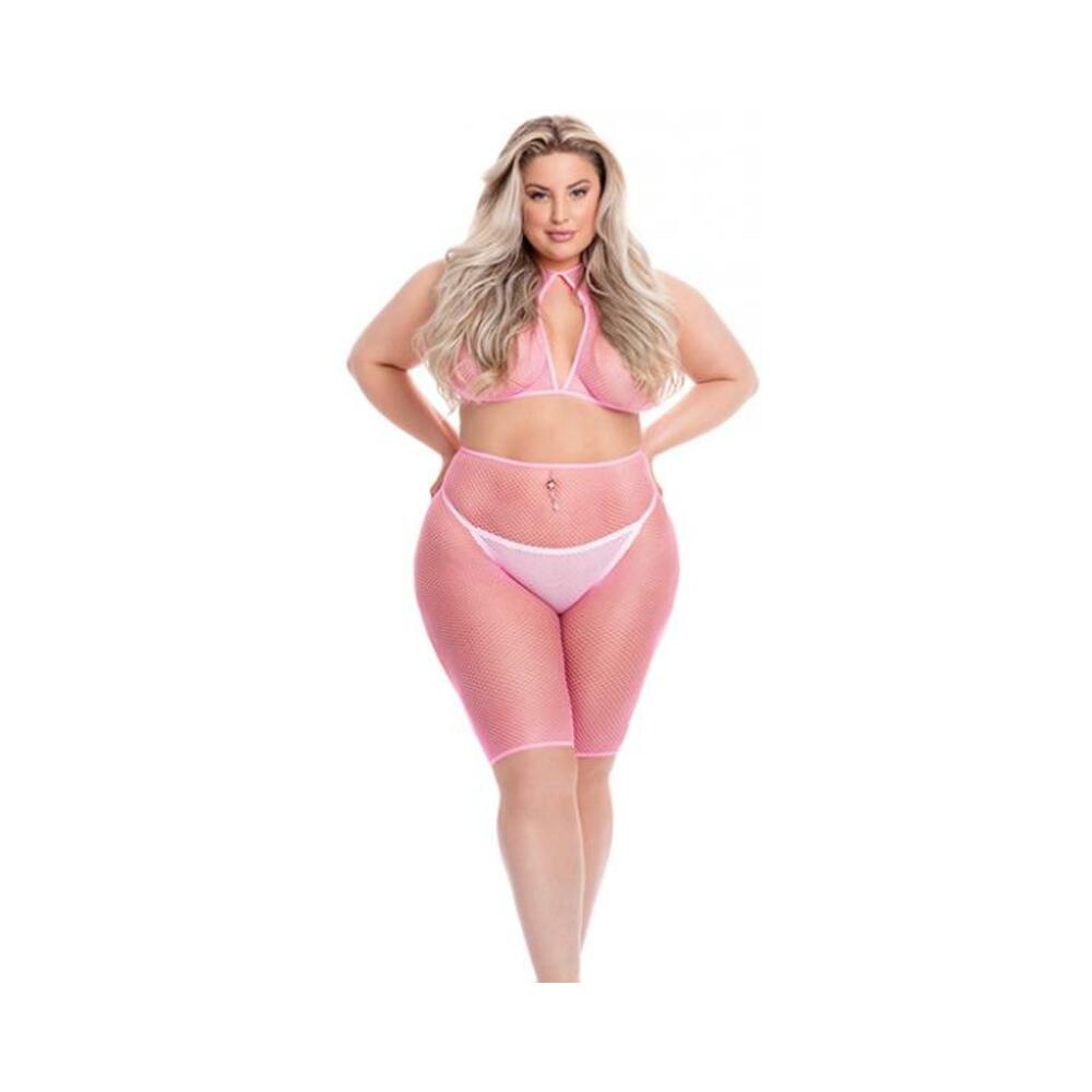Pink Lipstick Sunset Glow Halter Bra & Bike Short . Queen. Bust: 43in.-50in. Waist: 34in.-42in. Hip: 44in.-52in. Cup: D/DD. Dress: 16-22.